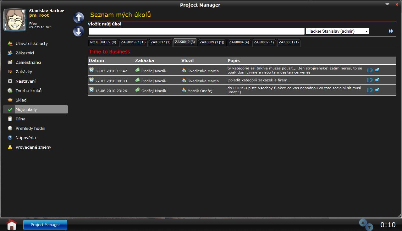 Project Manager je určený pro zajištění lepší vnitropodnikové komunikace v rámci správy zakázek a projektů, k navýšení