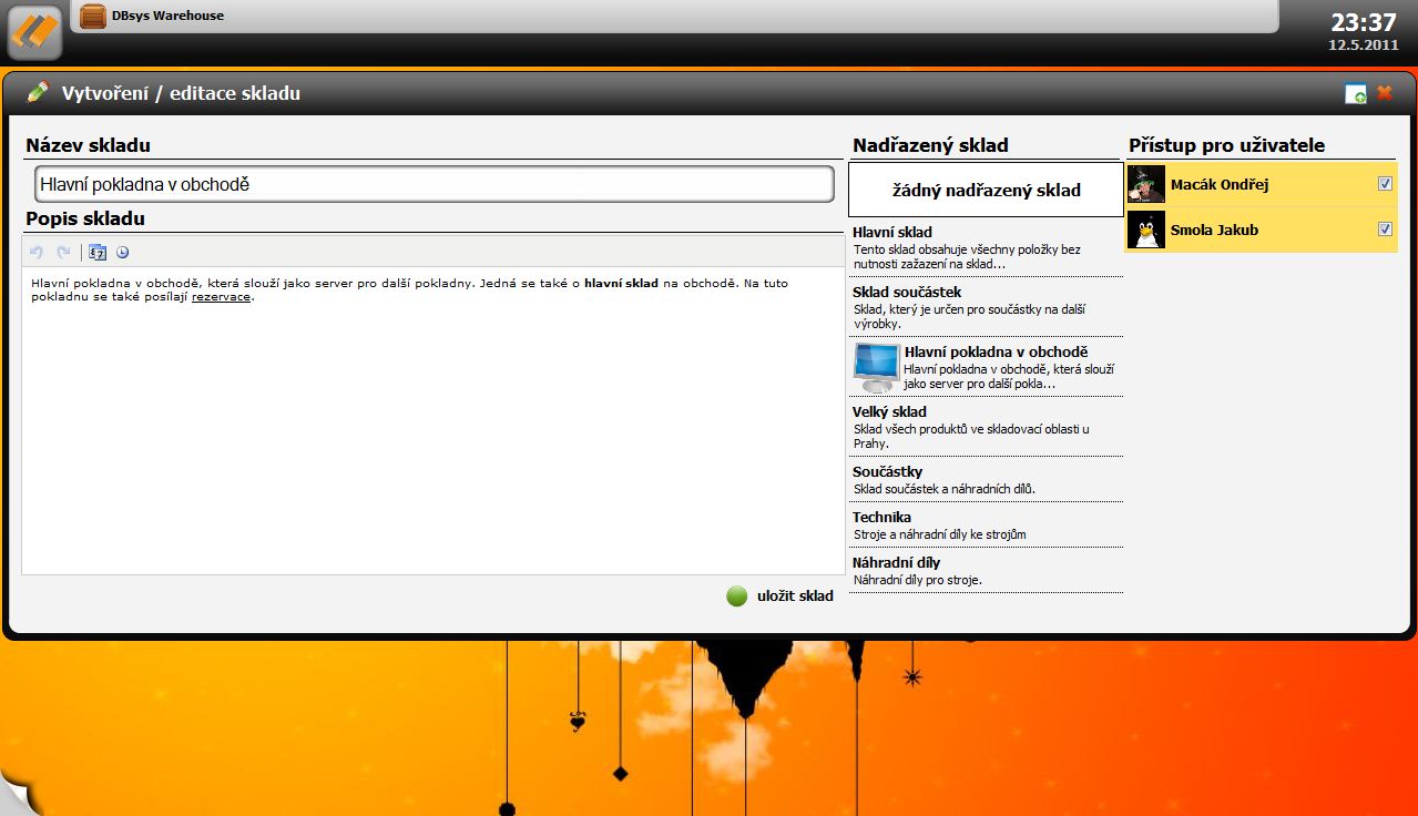Skladový systém je vhodný pro malé a střední podniky. Do popředí mezi ostatní skladové systémy se dostává díky své přehlednosti, rychlosti ovládání a díky propracovanosti všech svých funkcí. Grafické uspořádání uživatelského prostředí je koncipováno tak, aby bylo co nejsrozumitelnější a zvyšovalo efektivitu práce uživatele. Systém běží na internetovém serveru a je schopen komunikovat se sklady ostatních systémů, např. pokladních.